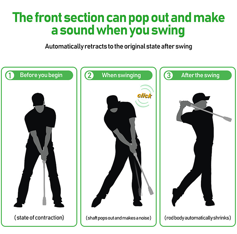 しなやかに曲がるシャフトが正しいスイング軌道を体感させるゴルフ練習器具です。