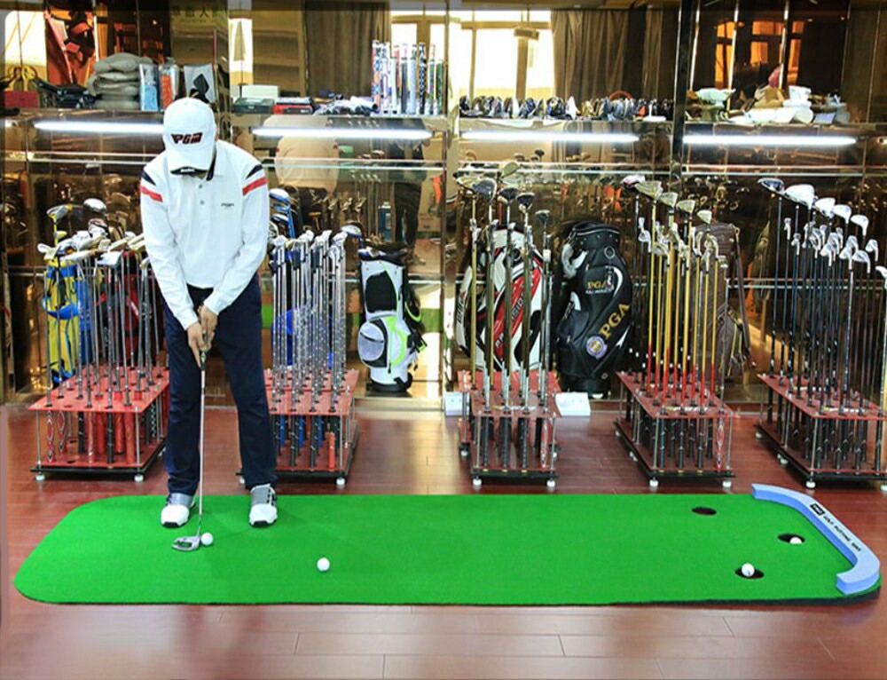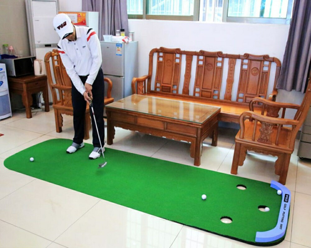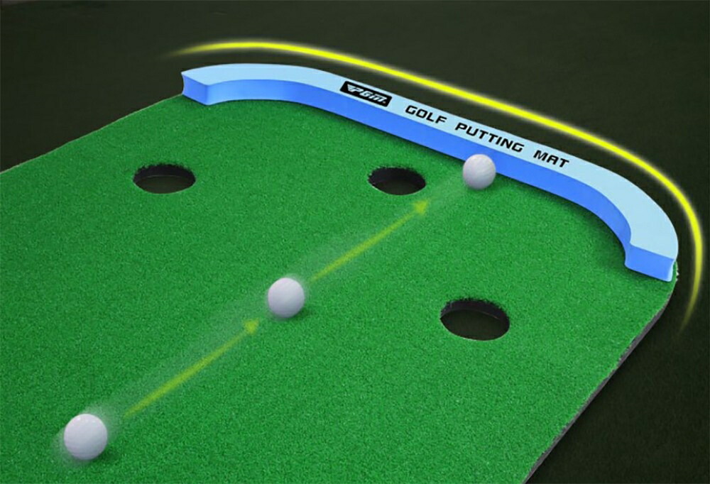 室内でいつでも本格的なパター練習ができるゴルフ練習器具です。全長三メートル×幅九十四センチの大型サイズで、三つのホールが集中力と方向性の向上をサポートします。