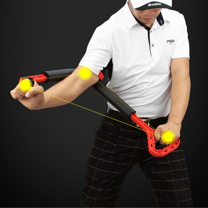 L字型の独特な形状で正しいスイング軌道を身体に覚えさせるゴルフ練習器具です。 三角形のグリップ部分が手首の角度を適切に保ち、スイング矯正に最適な設計となっています。 軽量で耐久性に優れた素材を使用し、室内外を問わず毎日の練習が可能です。 腕の筋力強化と正しいフォーム習得を同時に実現できる効率的な訓練道具として、初心者から上級者まで幅広くご使用いただけます。