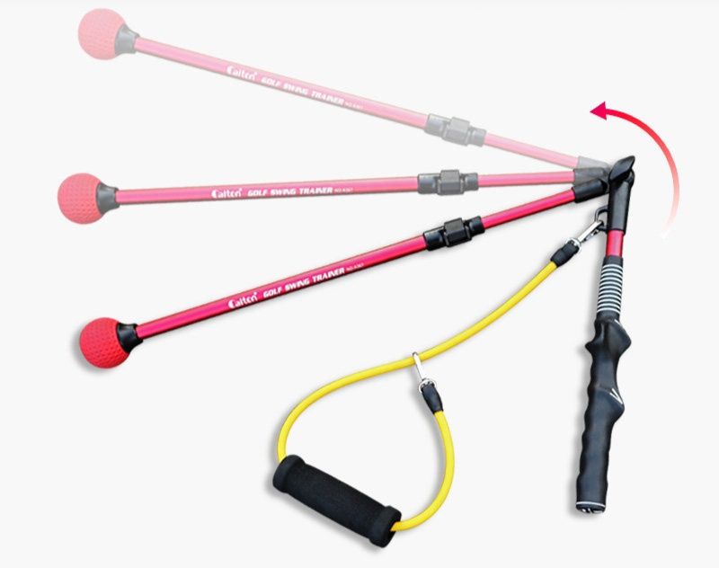 肩や腕の動きを矯正する可動式の棒と負荷チューブがセットになっており、スイング矯正に最適な設計となっています。