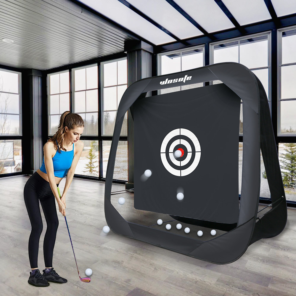 自宅で本格的なアプローチ練習ができるゴルフ練習器具です。 中央の的を狙って打つことで方向性と距離感を同時に養えます。 ネット構造でボールをしっかりキャッチし、周囲への飛び出しを防止します。 組み立て式で持ち運びも簡単、屋内外どちらでも使用可能です。 繰り返し練習することでショートゲームの精度が格段に向上します。
