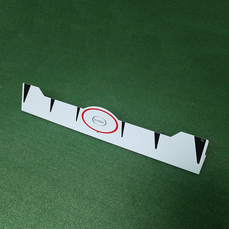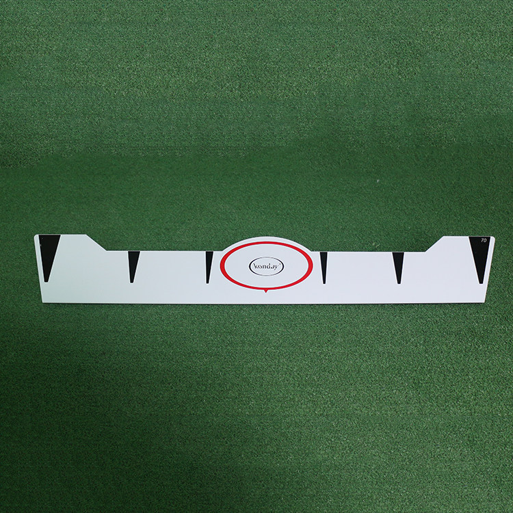 中央の円形目標と両側の三角マーカーで正確な距離感とストレートな打ち出しを習得できます。