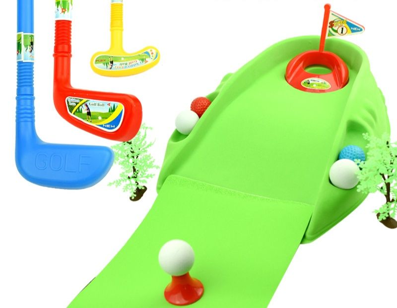 複数のクラブとパターに加え、傾斜のあるグリーンマットやホールカップが付属した充実のセット内容となっております。