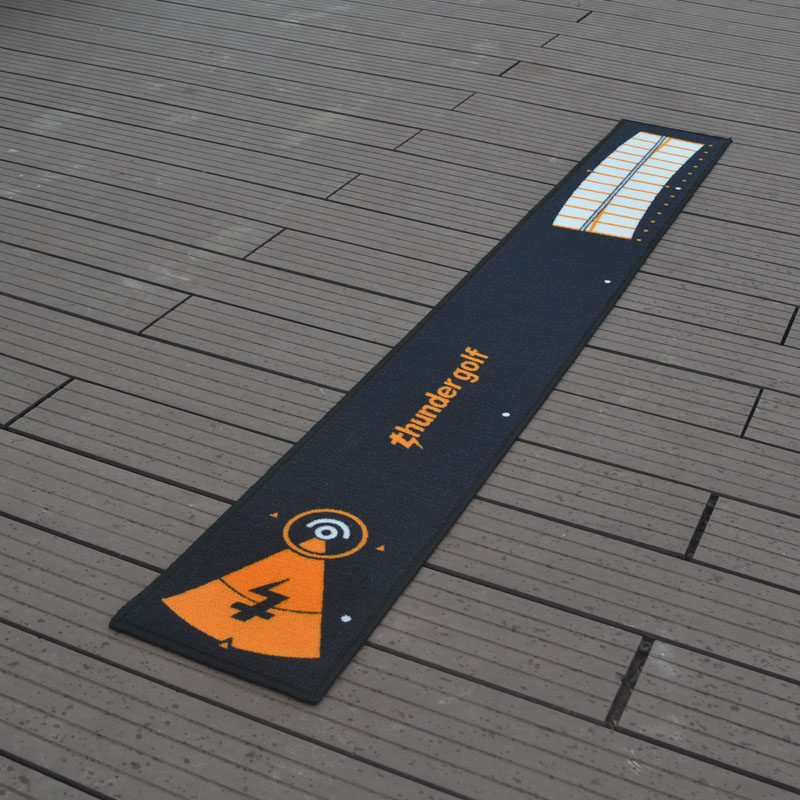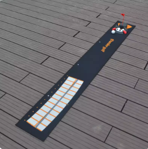長尺のマットには距離目盛りとカップホールが配置されており、パターの正確性と距離感を同時に鍛えることができます。